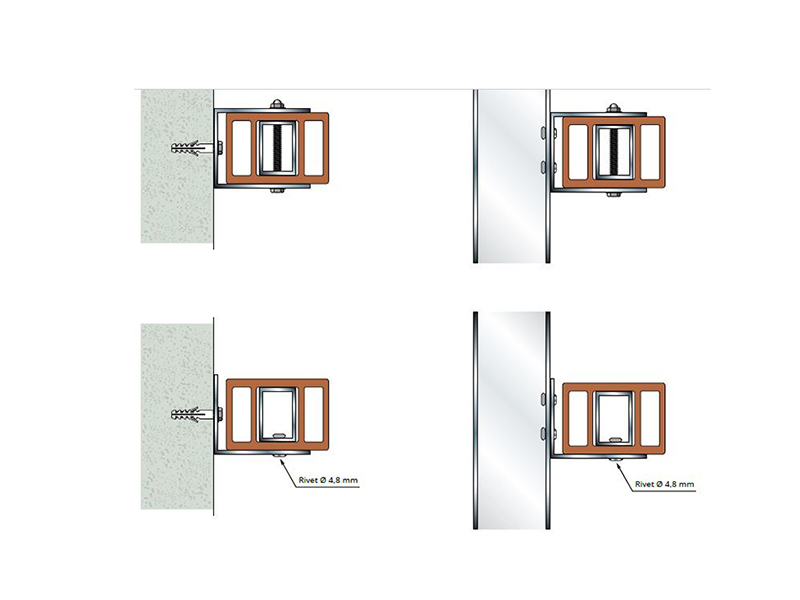 Boulons avec écrous borgne, ou rivets inox assurent la fixation sur l'équerre.