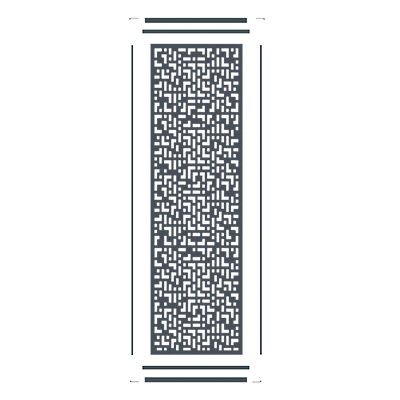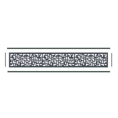 Un motif décoratif géométrique composé de fines lignes horizontales, toutes équidistantes les unes des autres. Ce motif évoque un sentiment de régularité et d'ordre. L'espacement uniforme entre les lignes renforce l'aspect géométrique du motif et permet la végétalisation de la clôture. Les plantes peuvent s’entrelacer avec les mailles du décor et grimper le long des montants.